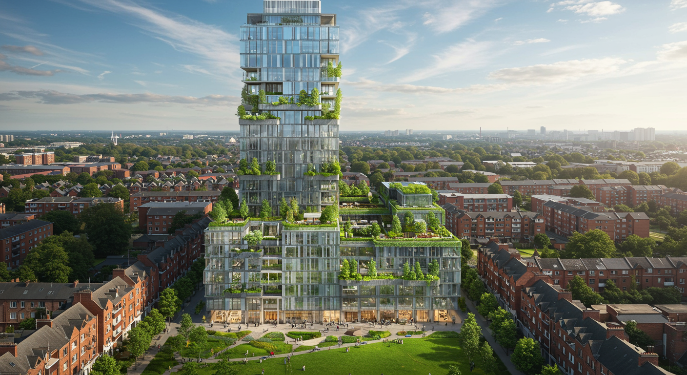 KDC’s planned tower has landscaped upper-floor terraces and a wall of greenery facing the park.