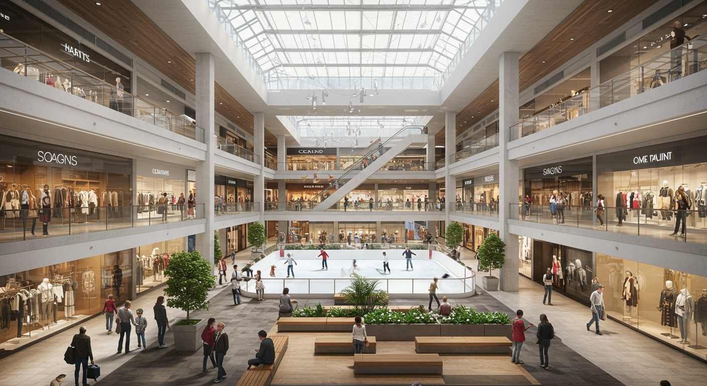 The Galleria's centerpiece ice rink would be downsized to create more event space.(Omniplan)