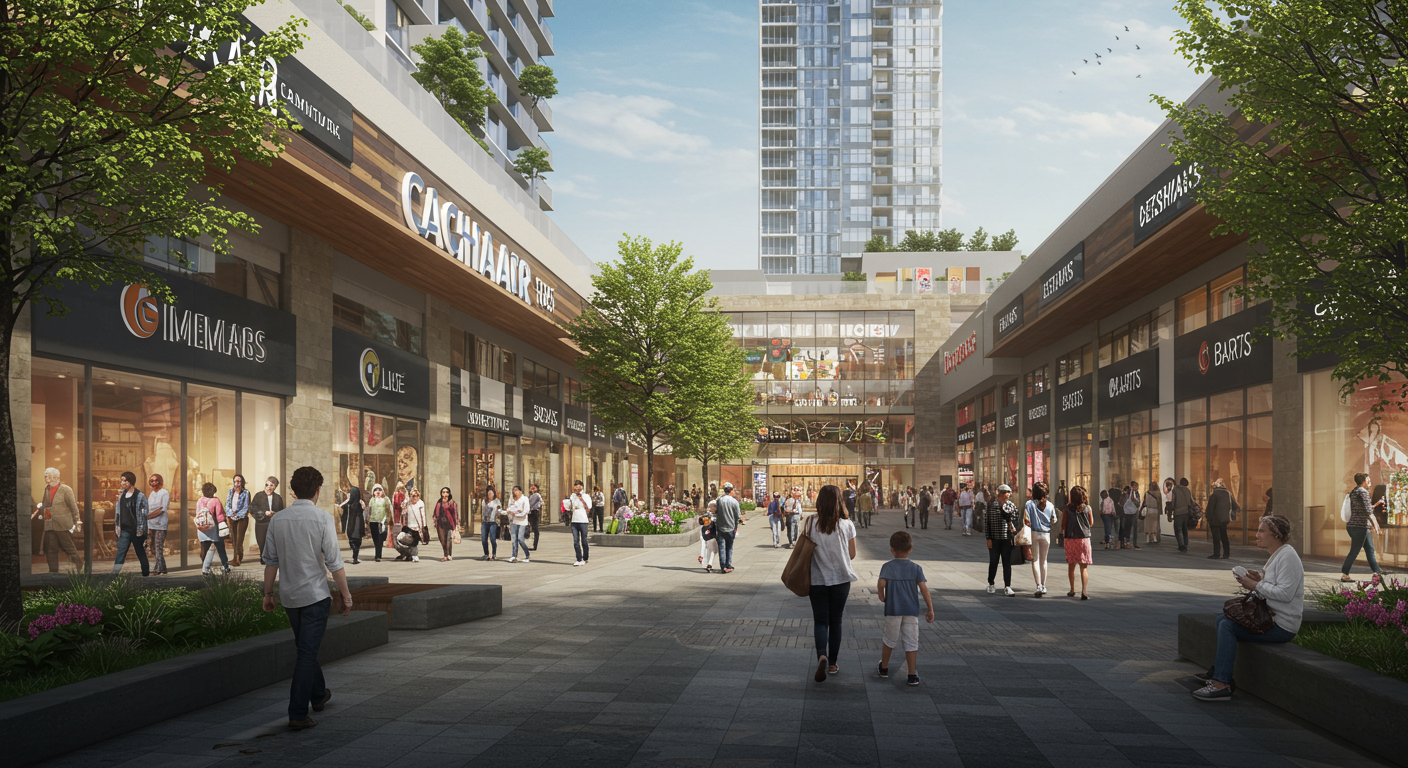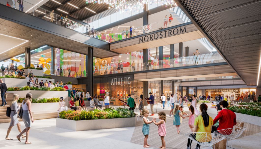 Architectural renderings show a revamped mall interior and additions of a residential tower and multi-screen cinema.