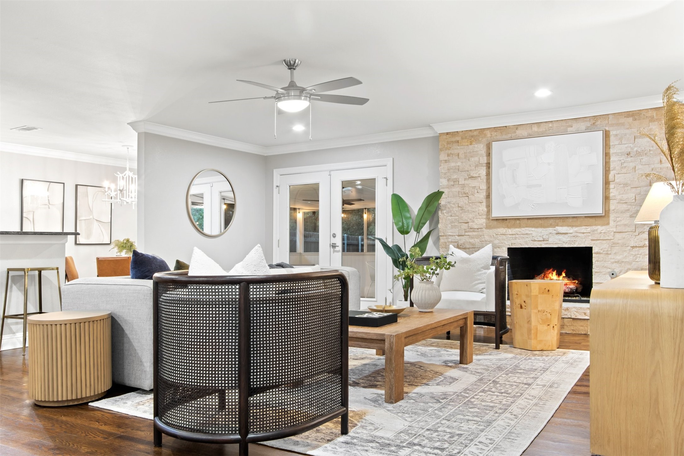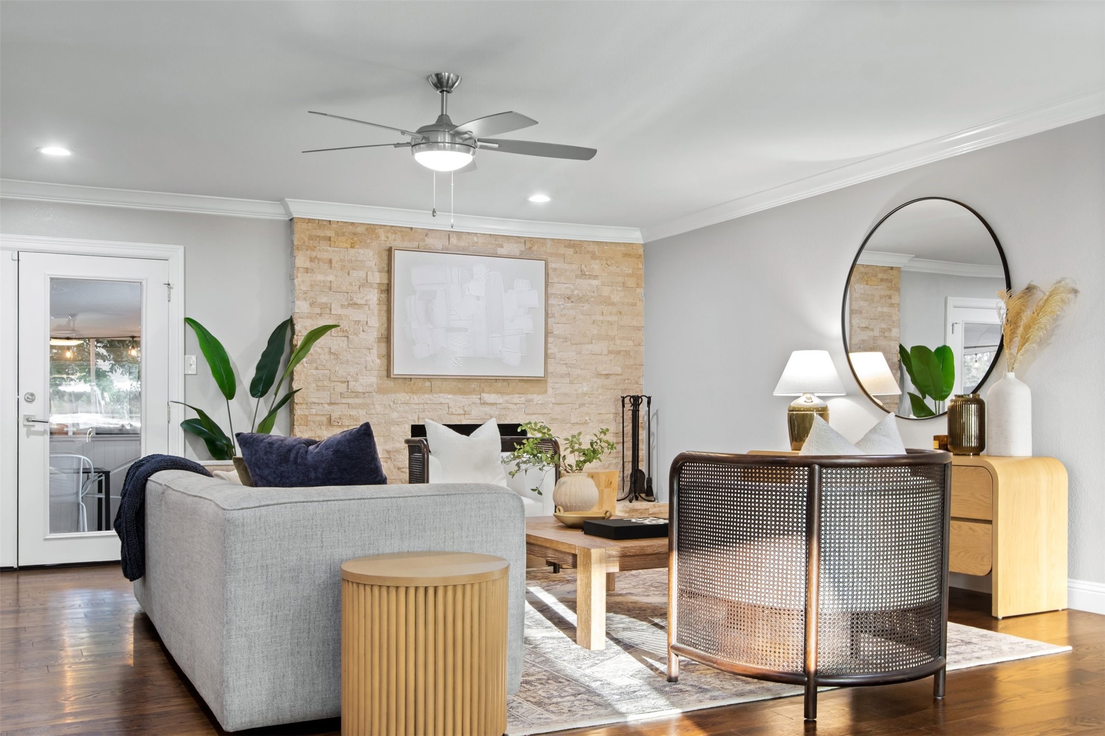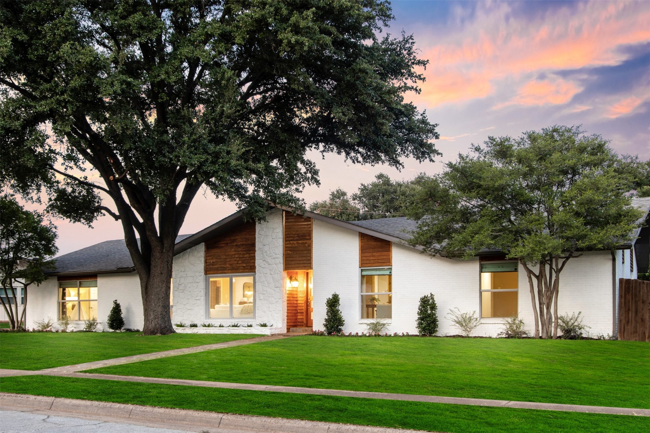 Remodeled Mid Century Modern Style Ranch home in the established Glen Cove Estates neighborhood located in the coveted private school corridor has a fresh face lift with high-quality finishes, warm color palette and large windows allow for an abundance of natural light. The flexible split floor plan could mean 5 usable bedrooms, or 4 bedrooms and 3 distinct living spaces! Open concept living allows sight lines to extend from the kitchen through formal dining and into the family room. The den features a large stone fireplace and French doors leading to screened-in patio perfect for entertaining. Swing drive to the rear entry garage means extra privacy and extra parking. Wooden fenced yard with extra green space in the back yard is a blank canvas for your gardens, playscape and or even a possible pool. Location convenient to public and private schools, ample shopping and restaurants, Galleria, Brookhaven Country Club, Glen Cove Pool, Love Field, 635 and Dallas Tollway.
